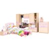 Este un dormitor de tineret, realizat din PAL melaminat de nuanta Mesteacan si MDF Verde, cu un design deosebit.